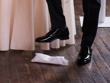 In Jewish tradition, the Breaking of the Glass at a wedding is a symbolic prayer and hope that your love for one another will remain until the pieces of the glass come together again, or in other words, that your love will last forever. The fragile nature of the glass also suggests the frailty of human relationships.