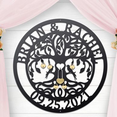 In a touching unity ceremony, the bride and groom fasten a padlock to a beautifully designed board, symbolizing their commitment to each other. Engraved with their names and wedding date, this lock represents their bond as they start their journey together. If they choose to have a family in the future, they plan to add locks for their children, creating a lasting symbol of love. This option allows them to celebrate their growing family, if they decide to embrace that path, while also honoring their unique journey together.