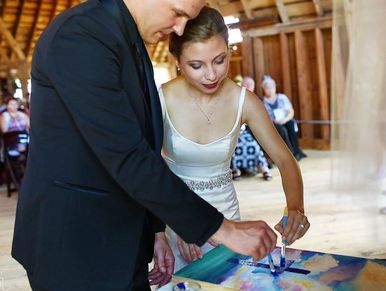 We love this fun idea to add a splash of color. Artsy couples can each choose a different color of paint and pour it onto a single canvas. The two paint colors blend and bring life to the empty canvas together, creating a modern-art representation of their marriage.
