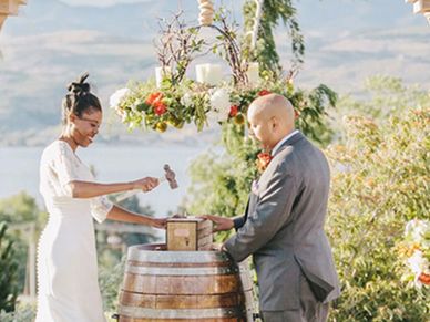 This is such a sweet ceremony option for a woodland-themed or garden-inspired wedding. This creative nature-inspired idea is to plant a tree together, adding soil (perhaps gathered from both of your hometowns) to a pot to symbolize your union. Like the tree, your relationship will need love and care.